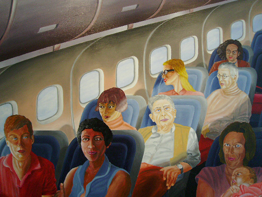 Leinwänden sind Menschen dargestellt, die sich an Orten befinden,